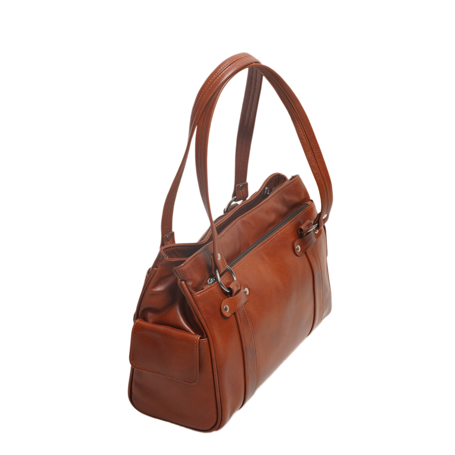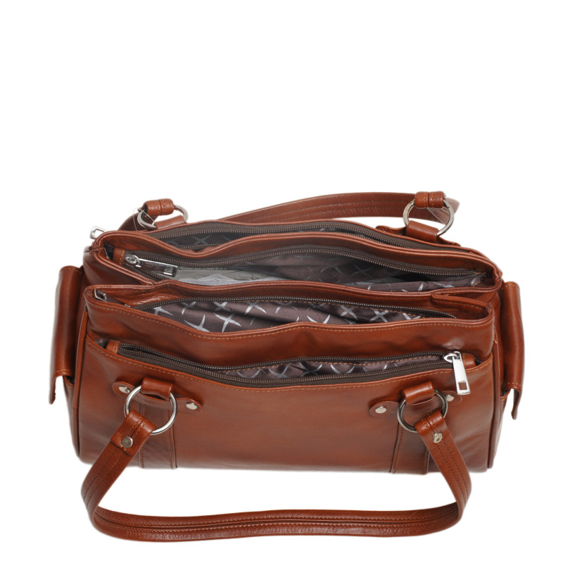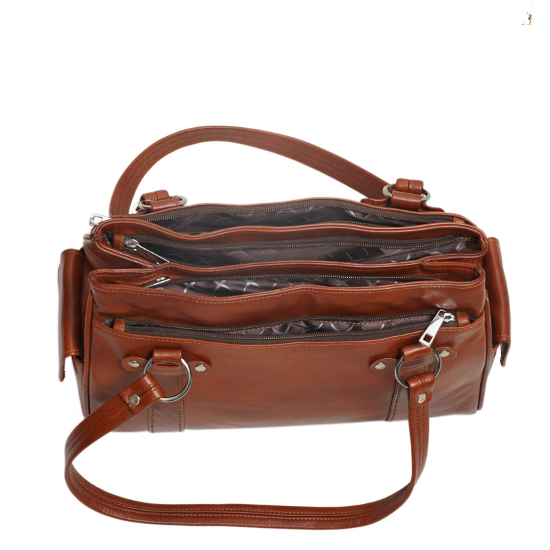 Delicious smelling and quality Italian leather handbag with outer and inner straps. Beautiful stitching accents on a classic and sophisticated accessory for every outing.