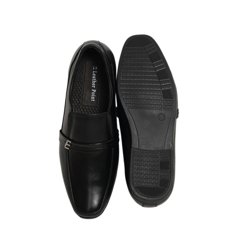 Chic and shiny,The shoe is an elegant shape amplified with a modern convention of calf _skin, leather sole and metal hardware.